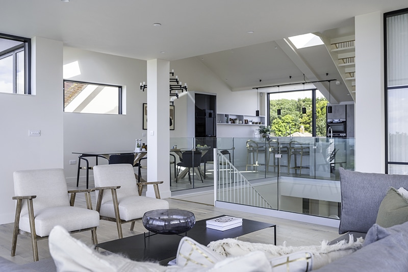 impressive architecturally designed property. Full glass walls looking into kitchen and living room